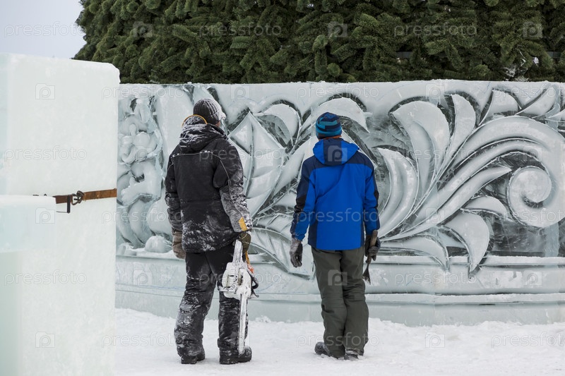 Монтажники на строительстве ледового городка