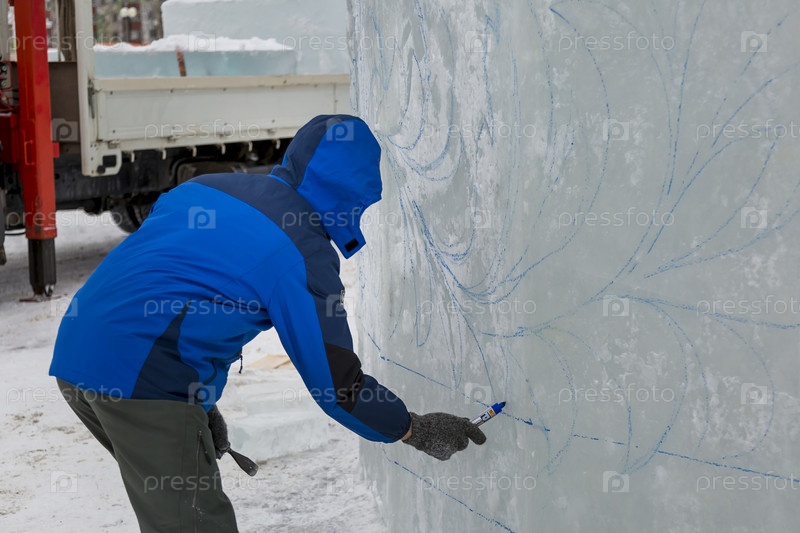 Художник рисует на ледяной глыбе