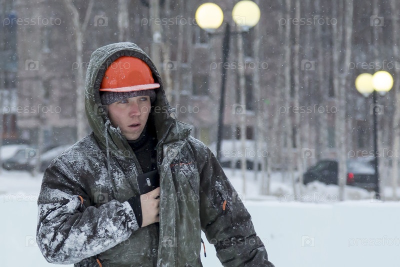 Портрет сборщика в оранжевой каске