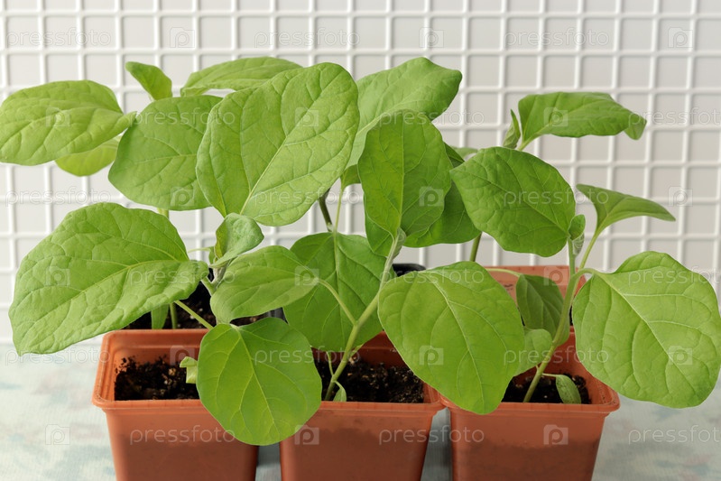 Рассада баклажанов в контейнерах для посадки в саду растет в домашних условиях