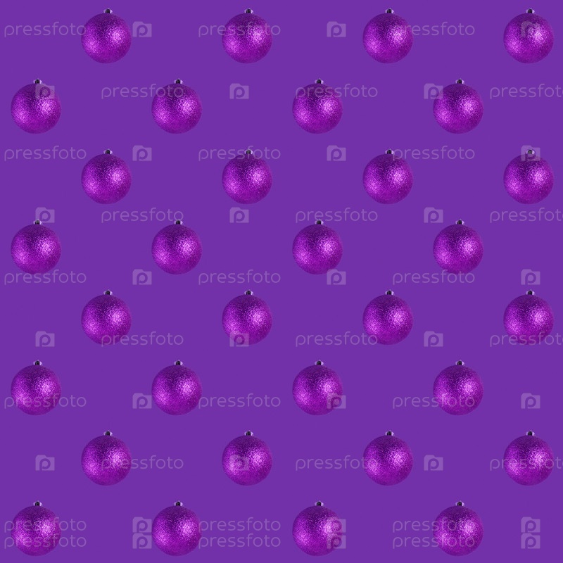 Бесшовный рисунок с фиолетовыми безделушками на фиолетовом. Рождественский монохромный фон