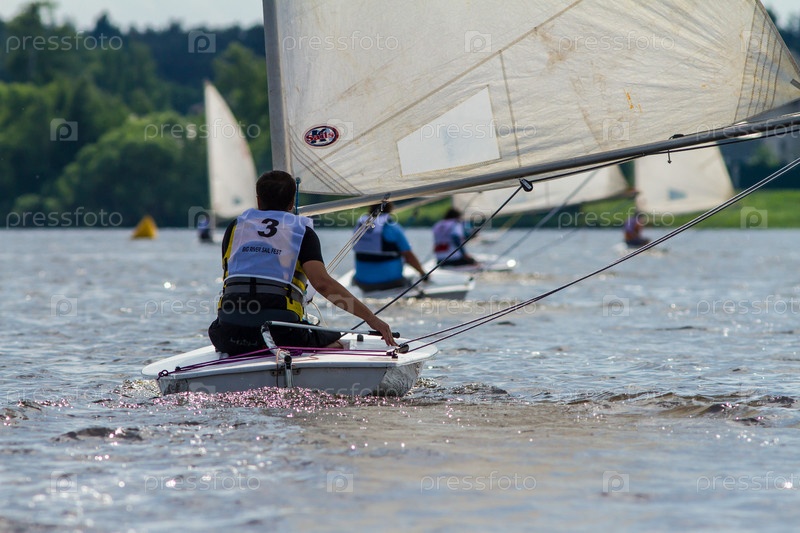 Мужчина управляющий мини яхтой