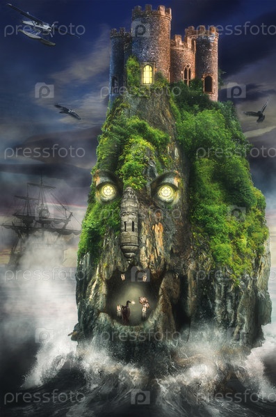 Сказочный затерянный остров (иллюстрация вымышленной ситуации, в виде коллажа из фотографий)