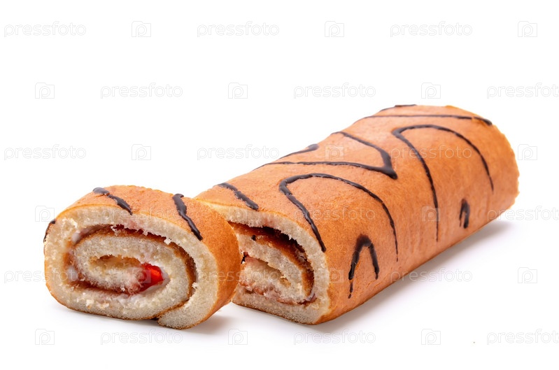 Бисквитный рулет на белом фоне