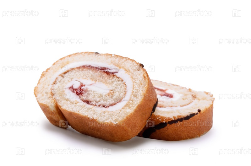 Нарезанный рулет на белом фоне