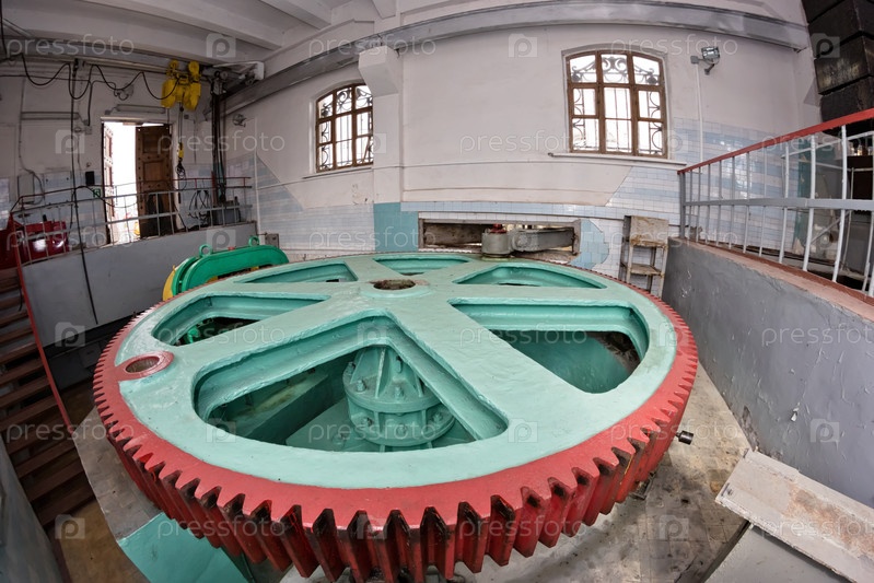Большое зубчатое колесо в машинном отделении гидроузла