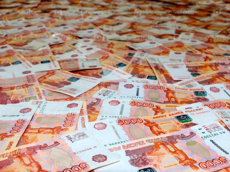 Связка пятитысячных российских рублей как элемент хозяйства и торговли