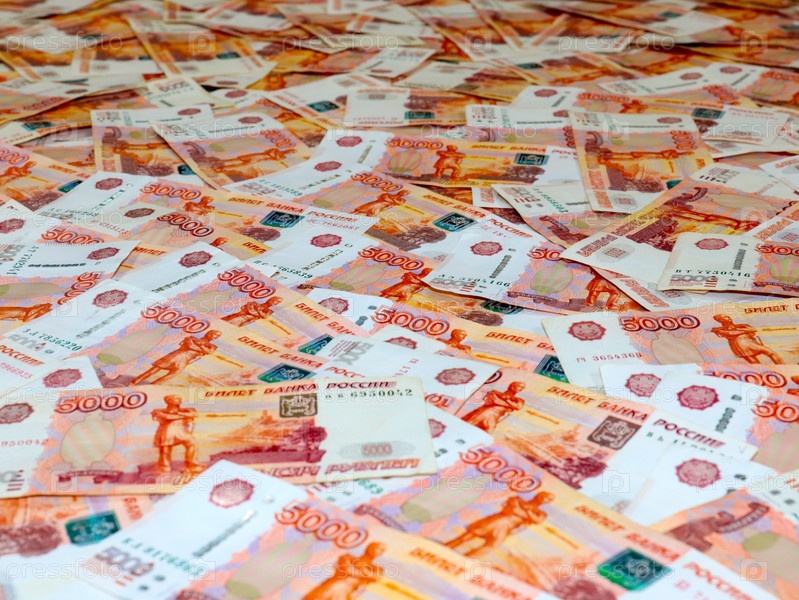 Связка пятитысячных российских рублей как элемент хозяйства и торговли