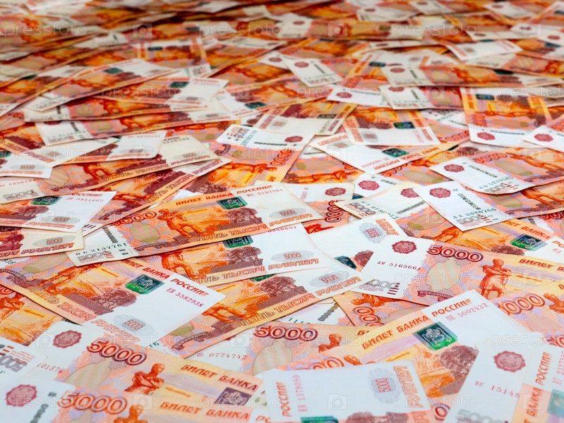 Связка пятитысячных российских рублей как элемент хозяйства и торговли
