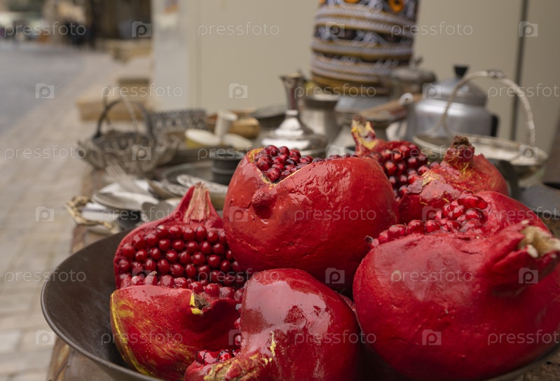 Красные гранаты в уличном магазине. Баку. Старый город. Азербайджан