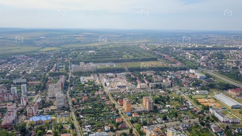 Красивый панорамный вид на центр Саранска, а также на строящийся стадион, Россия, Саранск
