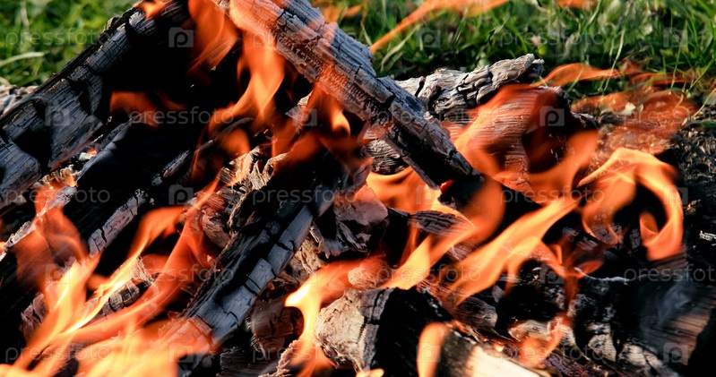 Костер крупным планом. Вечер