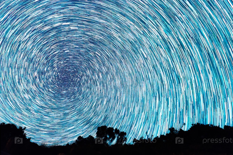 Следы от звезд в виде спиральных линий