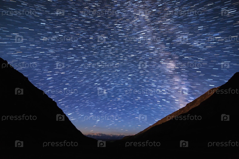 Следы звезд в виде линий. Вид в горах. Кыргызстан