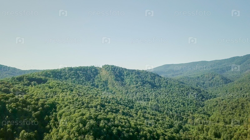 Горы покрыты лесом. Есть линия электропередач. Сочи, Россия