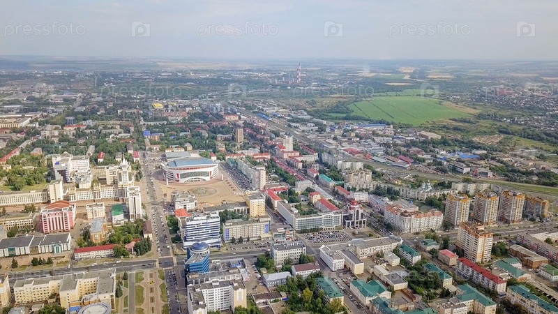 Красивый панорамный вид на центр Саранска, а также на строящийся стадион, Россия, Саранск