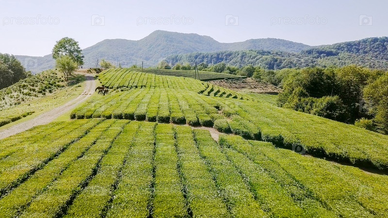 Полет над чайной плантацией. Краснодар, Сочи, Россия