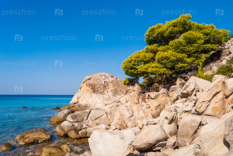 Вид на море через сосновый лес, Халкидики Греция