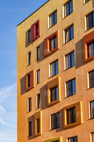 Красивые фасады современного жилого дома. Жилой комплекс В лесу, Москва, Россия