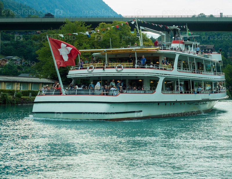 Оберхофен, Швейцария-август 2018 года, пароход с туристами, путешествующими по озеру
