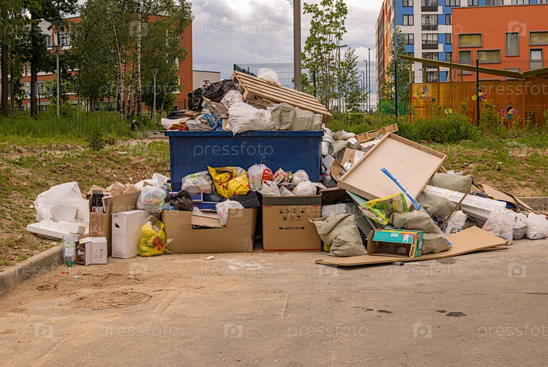 Переполненный мусорный контейнер в районе строительства нового городского жилого района