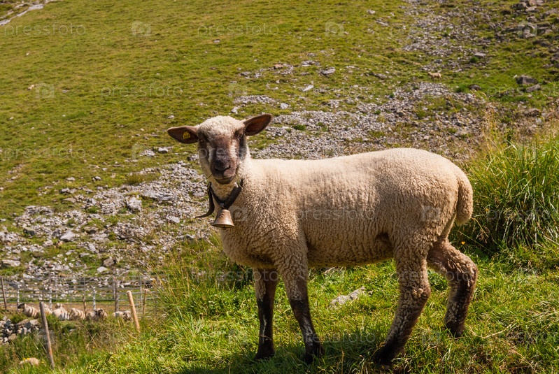 Овцы пасутся на высоком пастбище в швейцарских Альпах