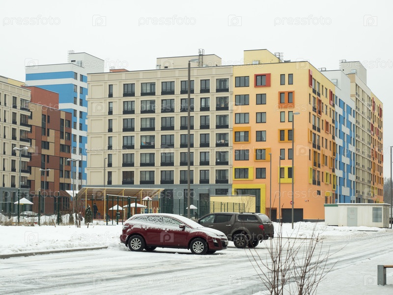 Новый современный жилой комплекс зимой