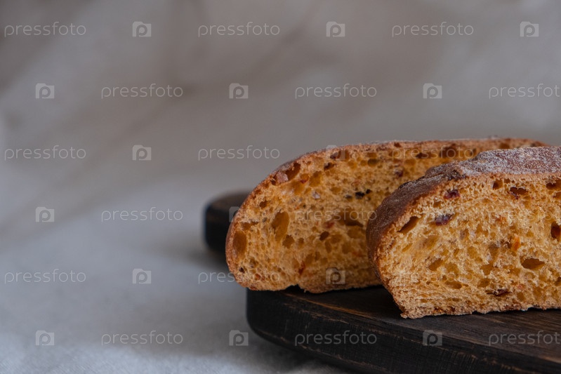 Цельнозерновой хлеб со сладкой красной паприкой и помидорами. Домашний хрустящий хлеб, нарезанный на кусочки