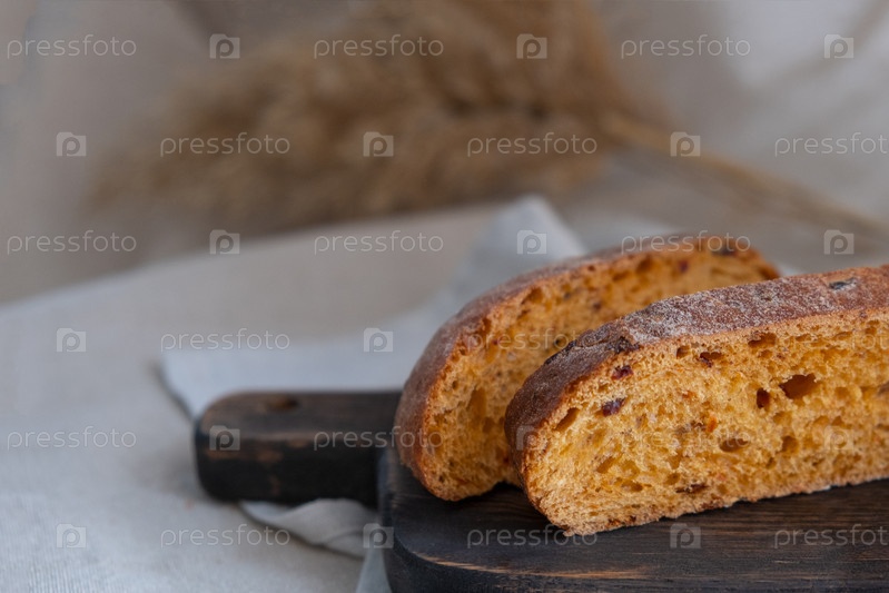 Цельнозерновой хлеб со сладкой красной паприкой и помидорами. Домашний хрустящий хлеб, нарезанный на кусочки