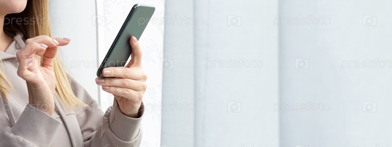 Портрет зрелой женщины с помощью мобильного телефона. Женщина средних лет. Красивая улыбающаяся дама