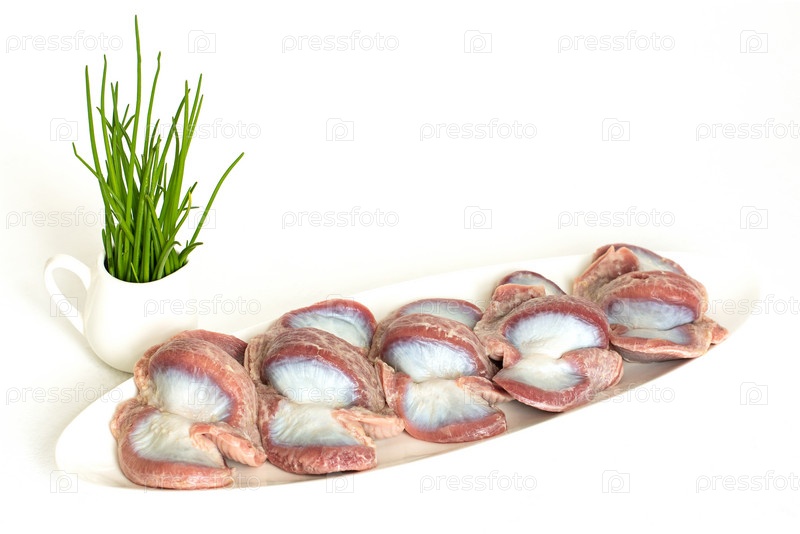 Сырой куриный желудок, субпродукты индейки. сырые кишки птицы. Изолировать. Скопируйте пространство