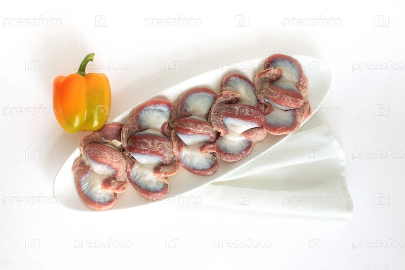 Сырой куриный желудок, субпродукты индейки. сырые кишки птицы. Изолировать. Скопируйте пространство