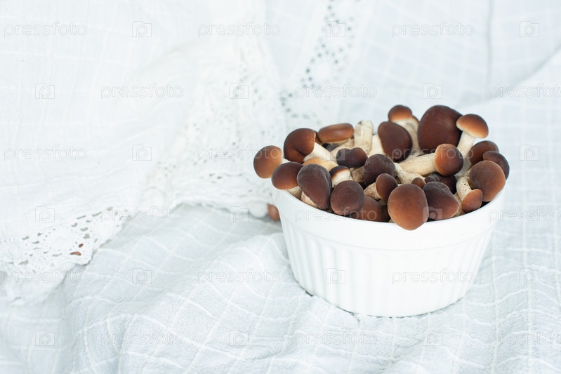 Грибы, опята в тарелке, на мешковине. Копировать пространство