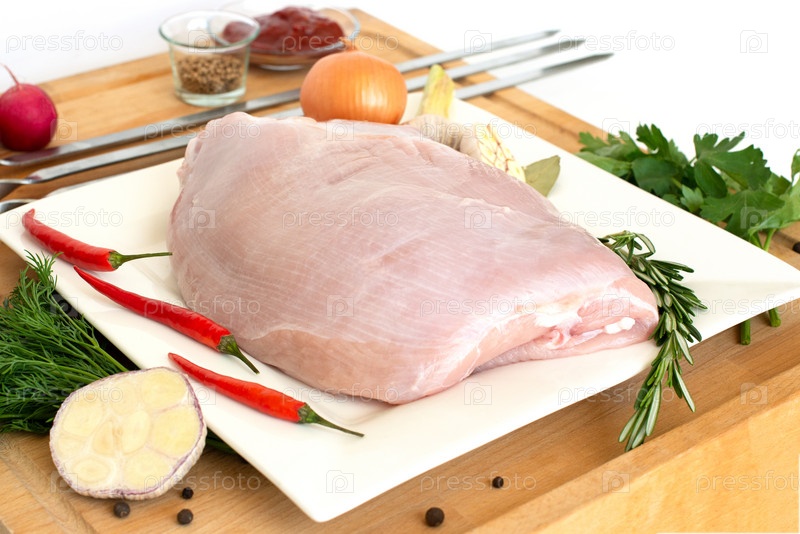 Сырое мясо индейки, филе для запекания на шампурах. Подготовка барбекю. ингредиенты