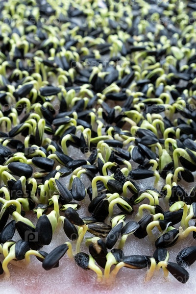 Ростки подсолнуха. пропорциональные семена. здоровая сырая пища, микроэлементы