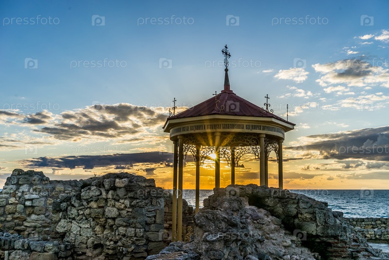 Красивый пейзаж с закатом и королевской беседкой