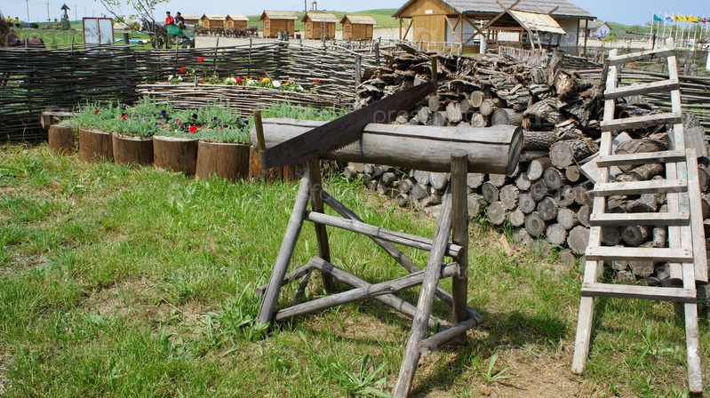 Пейзаж с историческими домами на территории музея атамана