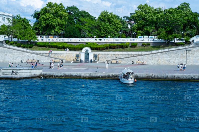 Севастополь, Крым - 16 июня 2021 г.: морской пейзаж с видом на город и побережье