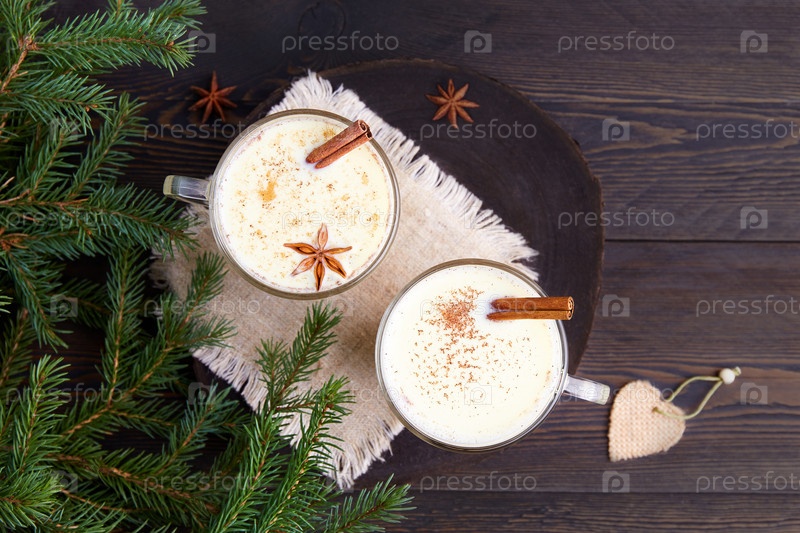 Рождественский напиток из яичного гоголя. Молочный коктейль с тертым мускатным орехом и корицей