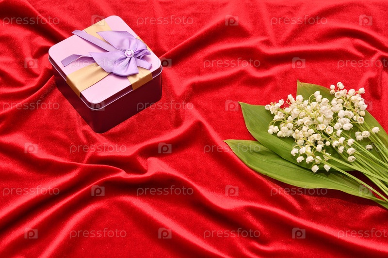 Цветок долины на красном фоне