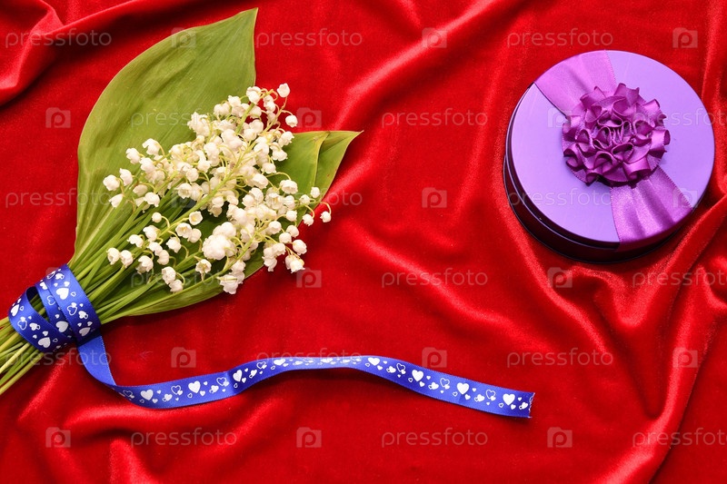 Цветок долины на красном фоне