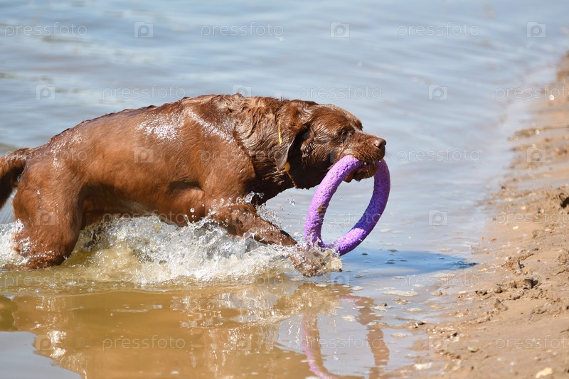 Лабрадор на прогулке у реки