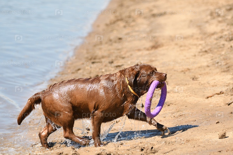 Лабрадор на прогулке у реки