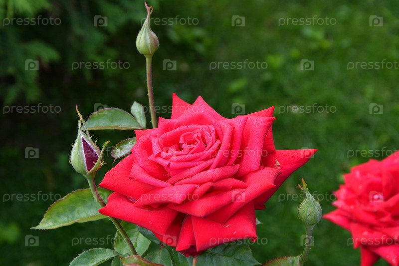 Роза красная после дождя
