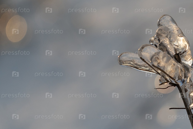 Красивый размытый фон с боке и ледяной веткой