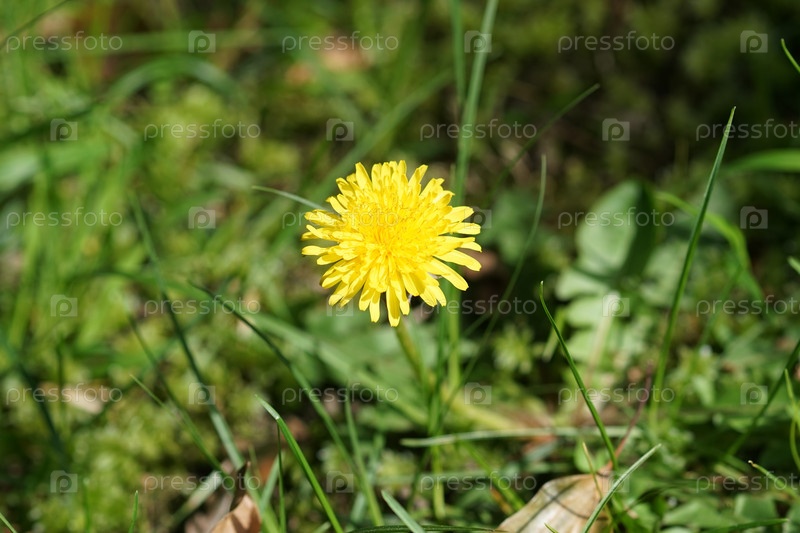 Ярко-желтые цветы одуванчика на фоне зеленой травы