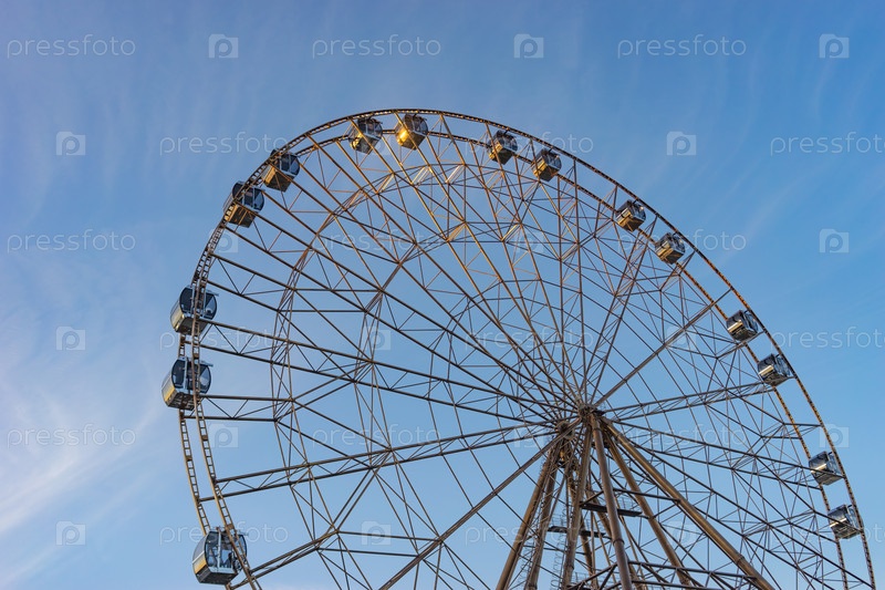 Большое колесо обозрения бронзового цвета на фоне голубого неба