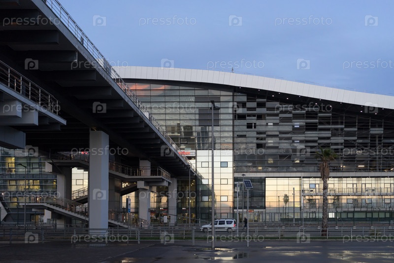 Сочи, Россия-17 января 2018 г.: Адлерский вокзал вечером