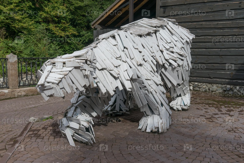 Скульптура белого медведя из деревянных досок