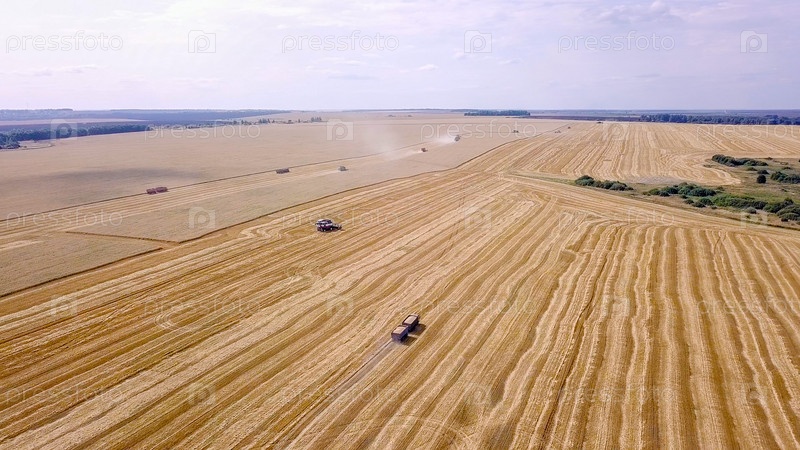 Зерноуборочный комбайн собирает пшеницу на поле